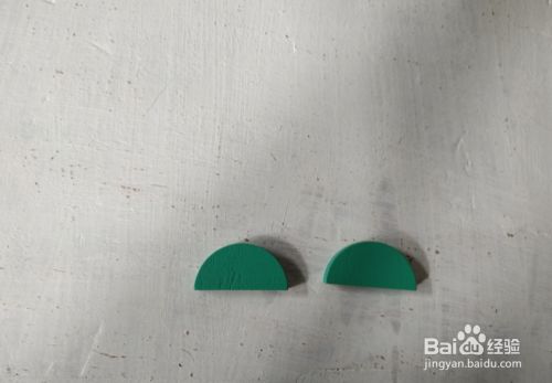 放上两个左右间隔的半圆形,弧形在上,如图。