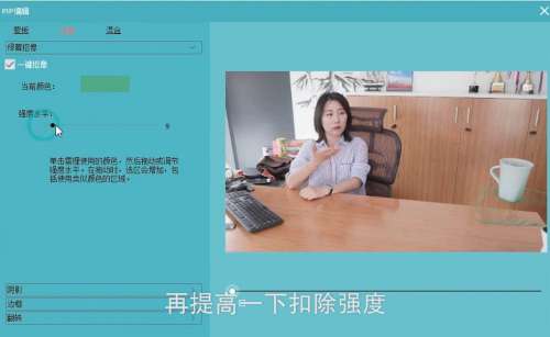 5吸取绿布的颜色,再提高一下扣除强度,这样绿布就被扣除了。