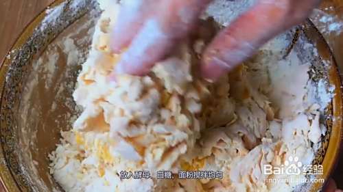 将南瓜放入碗中捣成南瓜泥,放入酵母、白糖、面粉搅拌均匀,搓成一个光滑的面团,盖上保鲜膜发酵。