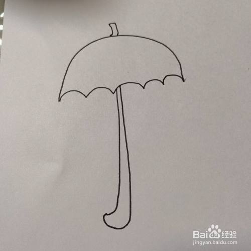 用描线笔画一个向下的半圆,从左边向右边画上曲线,做雨伞的上面部分。