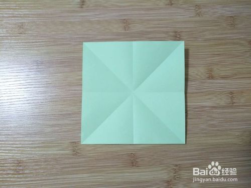 第三步:沿着米字型折痕把彩纸整理成双正方形。