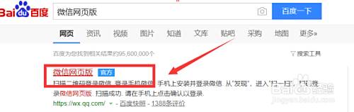 上一步操作结束后,紧跟着页面跳转出现了检索结果。大家找到微信网页版带有“官网”字样的检索结果就可以啦,然后就点击进入哦!