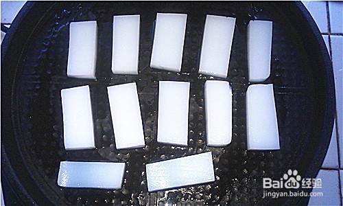 电饼铛预热,双面刷油,煎凉粉条,正反面出现硬壳即可冷凉备用
