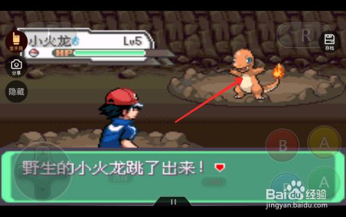 然后在这附近闲逛,就会有一定几率遇到小火龙;