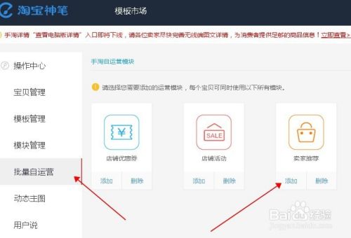 第二,进入神笔,点击左侧“批量自运营”,再点击右侧“卖家推荐”下方的“添加”按钮。