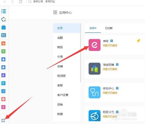第一,打开桌面上的千牛软件,点击左下角应用中心,在中间找到神笔打开。