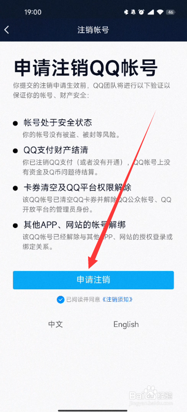 在注销界面勾选同意协议,点击【申请注销】即可。