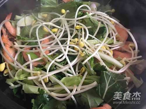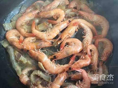 再把鲜虾放入加一点料酒一起爆炒至熟。