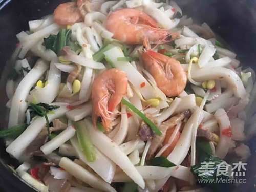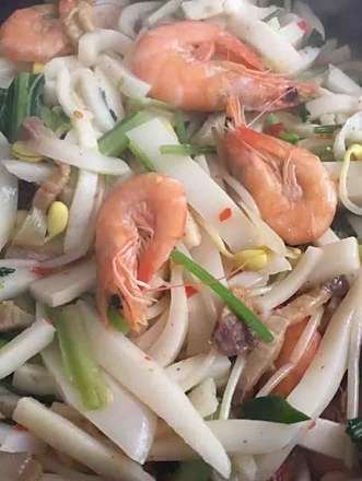 腊肉的香味和虾的鲜味融在一起炒的年糕,那个味儿十足过瘾……