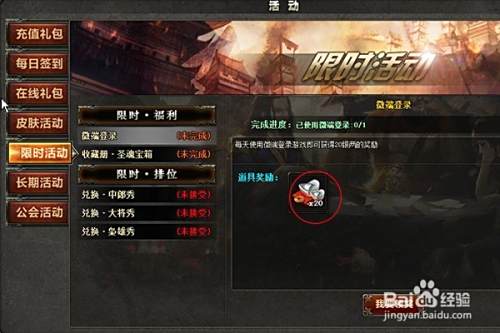每日通过微端登录也可获得20两银子,虽然不多,但蚊子再小也是肉啊;