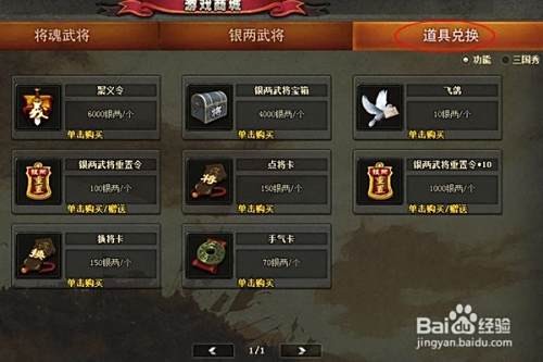 在游戏商城的道具兑换中,可用银两购买一些比较实用的小道具,例如购买聚义令后,等级50+的VIP玩家即可创建工会,用银两武将宝箱可随机获得一个永久武将等等;