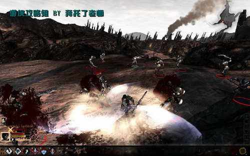 1进入游戏,开始就是一场战斗,系统会指引玩家来熟悉操作。WASD或用鼠标都能控制角色的移动和视角的转换。把鼠标移到敌人身上,然后点击右键就能进行攻击。画面左下角的人物肖像边上现实有血量和能量或魔法值等。下方是技能快捷栏,当被多个敌人包围时使用旋风斩非常得爽快。右上角是地图。战斗中会有作为法师的Bethany帮助主角消灭骷髅兵。随后会出现一只大型食人魔,利用技能来杀掉它,没血的时候可以带着它放风筝让法师MM来杀掉食人魔。杀掉食人魔之后,主角和Bethany被大量骷髅兵包围,此时黑龙女巫出现帮助两人解围。然后是一段动画。动画过后,游戏正式开始。先要捏小人,然后开始游戏。