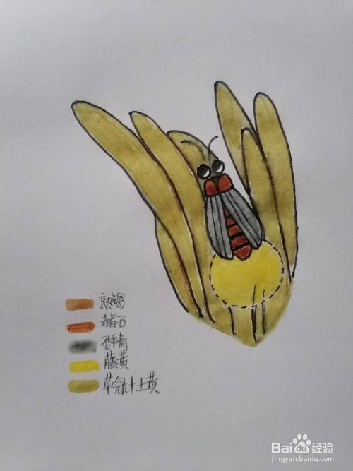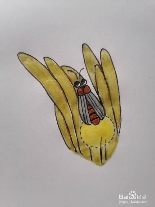 用藤黄水彩涂好萤火虫尾部发光的地方