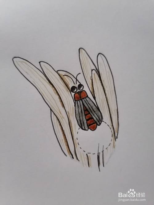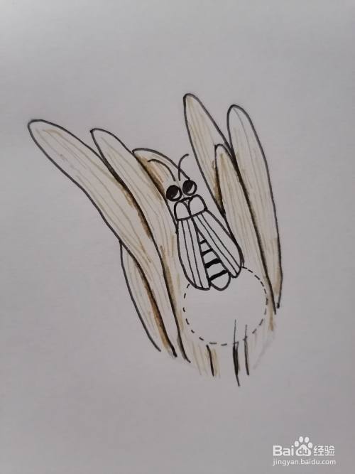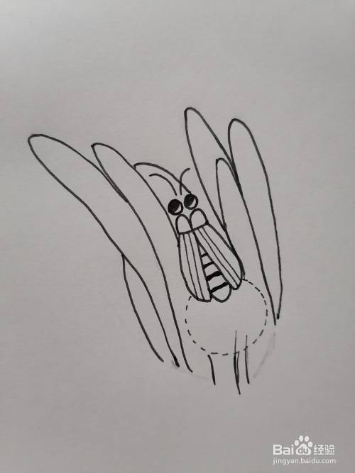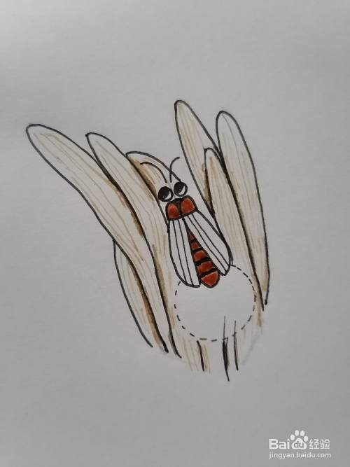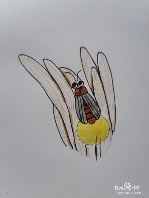 首先用铅笔在纸上画出萤火虫的大致轮廓,再用黑色笔描好边
