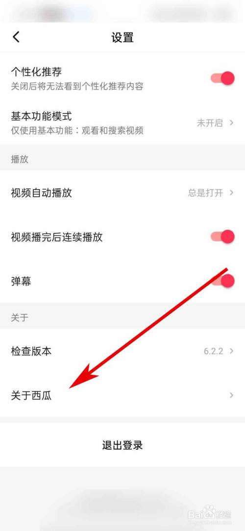 进入到“设置”页面后,点击如图位置的“关于西瓜”