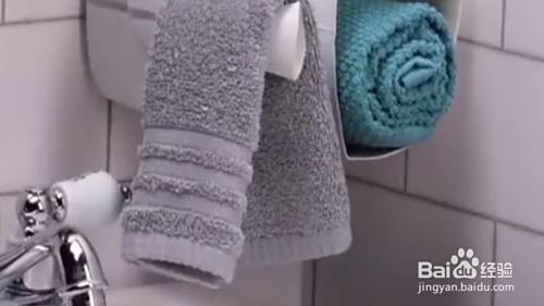 将它的底部粘上胶水,掏的小洞向上,垂直与墙面粘住,小洞就能用来放吹风机,把手可以用来挂毛巾,瓶子内部也可以放毛巾
