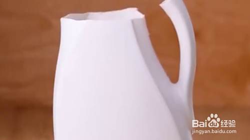 拿出一个带把手的空的洗衣液瓶子,将顶部剪掉,瓶身一侧掏一个洞