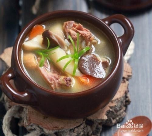 7、关火前5分钟加盐,过早放盐会凝固鸡肉的蛋白质,鸡肉不易软烂,香气也不容易熬出来。