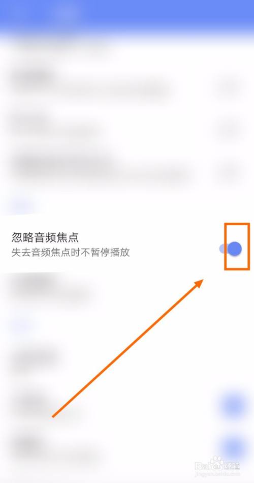 6.当“忽略音频焦点”的按钮圆点的颜色为蓝色的时候,问题就得到解决了。
