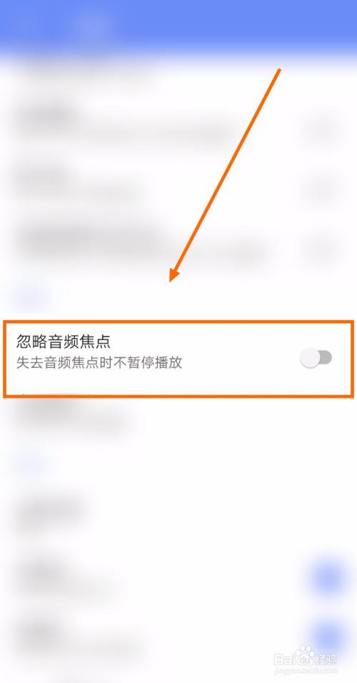上拉“设置”页面,寻找“忽略音频焦点”。