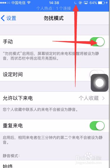 在这里我们可以直接将整个手机设置成勿扰模式,只要打开下示图片中的手动即可启用。