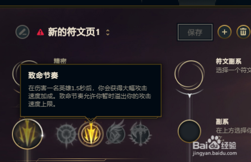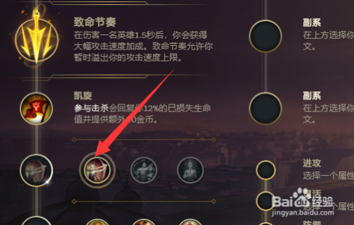 在新版本里复仇之矛这个英雄在符文基石上要选择致命节奏,这个英雄本身就是吃攻速的,搭配致命节奏配合其前期强势可以打出优势