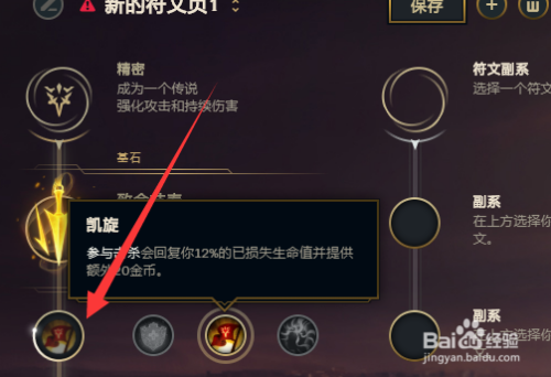 复仇之矛这个英雄点出凯旋符文,是因为其E技能很容易造成击杀,可以在击杀后符文返回一定的血量