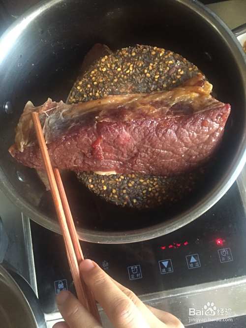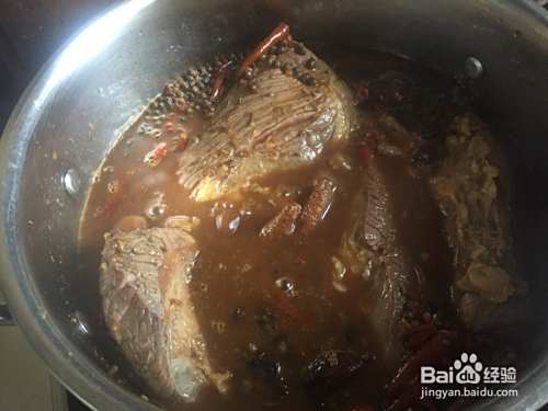 牛肉改刀(顺纹路切)放入卤水中,我是自己炒的麻辣卤水,如没有了卤水,可以用李锦记的卤水味道也不错。
