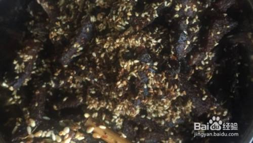 炸好的牛肉倒入佐料混合均匀放凉即可。