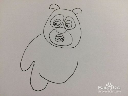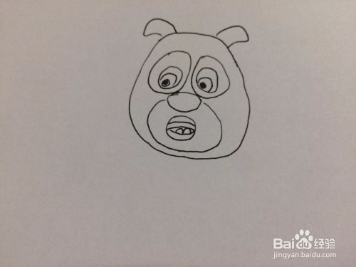 然后画出熊二的嘴巴,还有露出来的两颗牙齿哦。