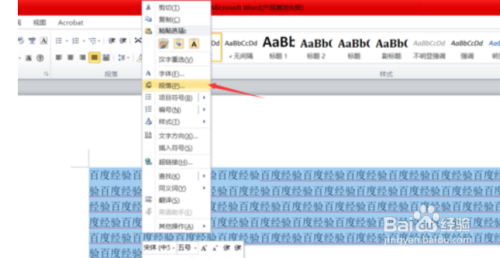 我们新建一个word空白页,然后在其输入部分内容,接着我们输入好内容之后,我们选中我们输入的内容,然后右击,点击段落即可进入段落设置页面,如下图所示。