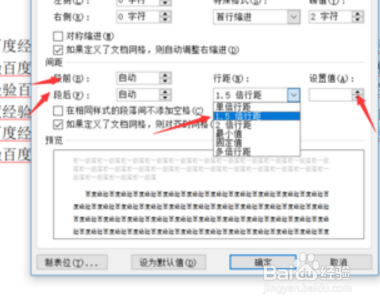 接着我们第三个就是间距间距主要包括段前段后。段前段后一般设置为自动,然后行间距的话可以设置为1.5倍行间距,也可以设置为固定值,一般固定值为20磅。如下图所示。