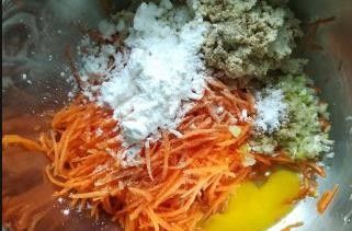 加入花椒粉、盐、鸡蛋、干淀粉、葱末,用手抓匀,静置10分钟,让胡萝卜出水。