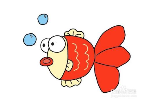 最后给小金鱼和气泡上色,顺便勾画出小金鱼的鱼鳞部分。