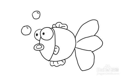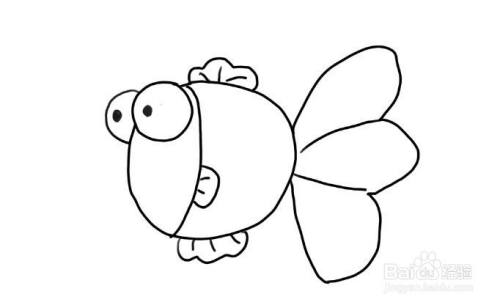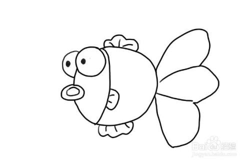 儿童简笔画彩色,怎么画小金鱼,要突出小金鱼圆鼓鼓的眼睛,具体步骤如下。