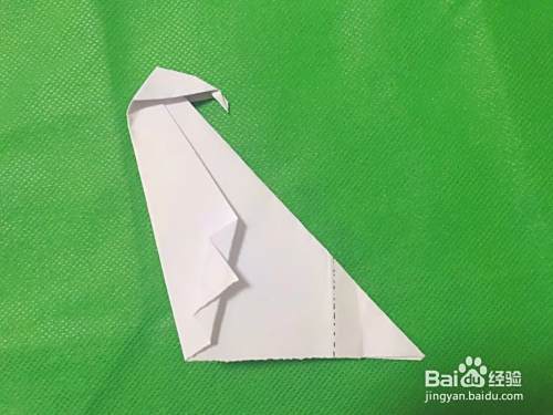 将折纸翻过来,继续将下端部分沿着虚线,向外折叠。
