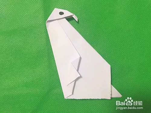 再次将纸翻过来,用笔画上眼睛,可爱的小企鹅就做好了。