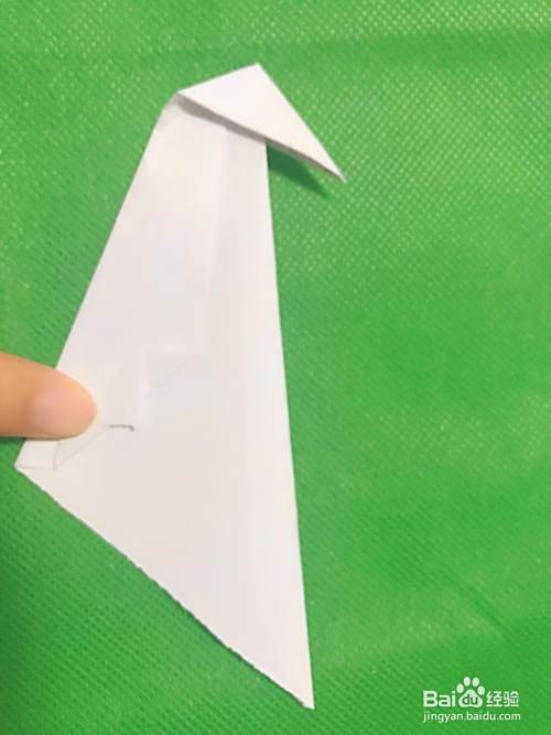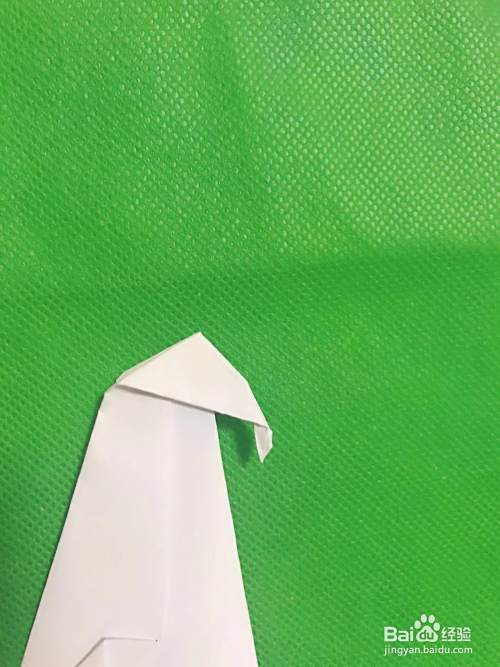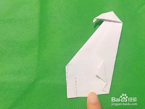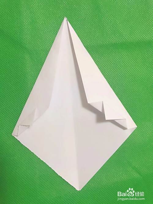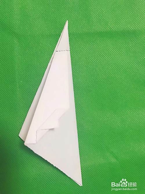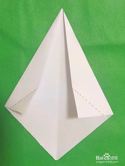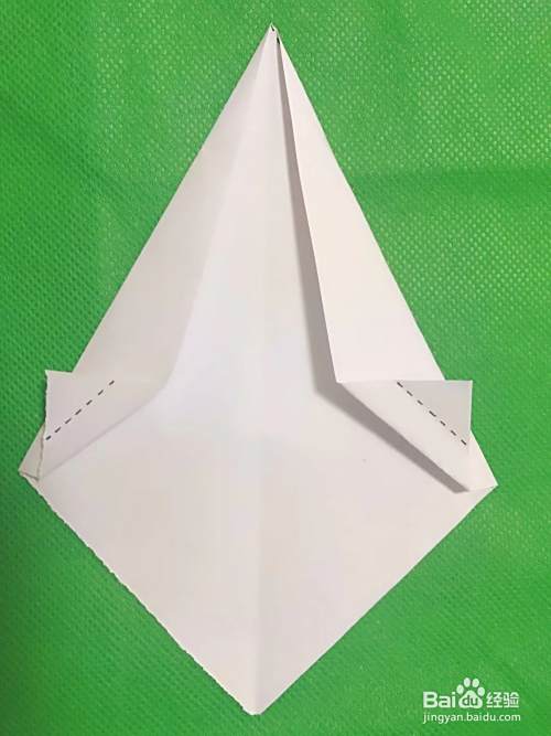 将上一步折叠上去的两个纸角沿着虚线,向下折叠。
