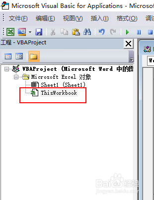 打开excle的表格,进入VBA的编程界面,在列表中选择workbook
