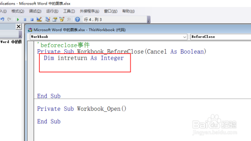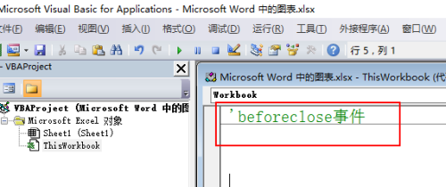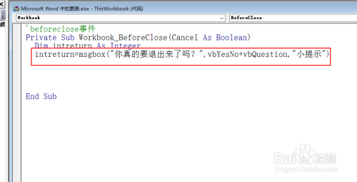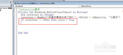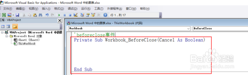 新建一个BeforeClose事件,这个事件表示的是在工作薄关闭之前所触发的事件。