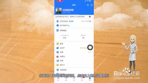打开进入支付宝我的页面,点击右上角的设置图标。