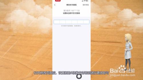 输入原来的支付密码,打开修改页面后,设置新的6位数支付密码进行更改即可。