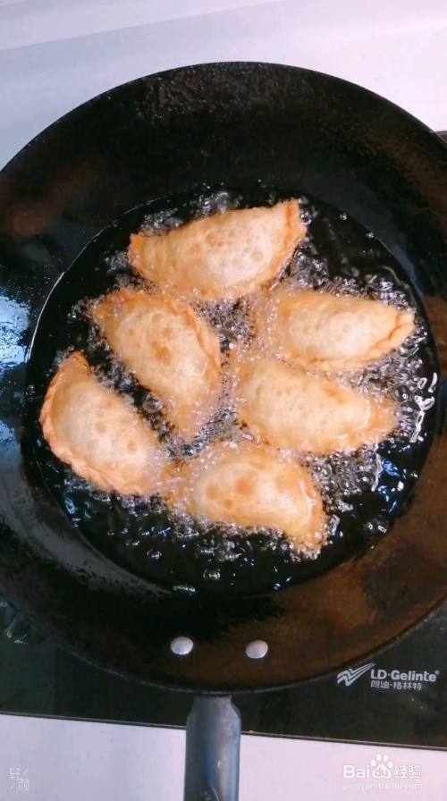 锅里多倒些油,油温4成热,一个个下入菜盒子,中小火炸至两面金黄酥脆即可出锅