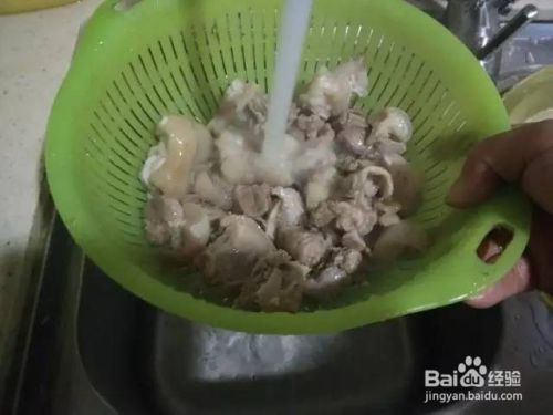 用水冲洗飞过的猪手。用水冲主要是去除浮沫。