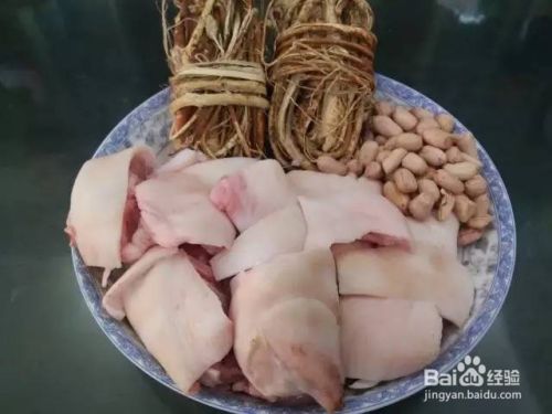 准备好材料。将猪手洗净切大块,五指毛桃清洗干净。