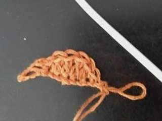 织完之后,我们从后面往前织,然后刚开始要勾单短针,后面的就需要使用勾双短针了。
