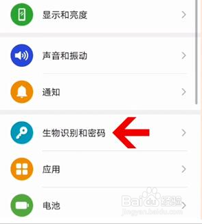 首先我们打开设置中的生物识别和密码。