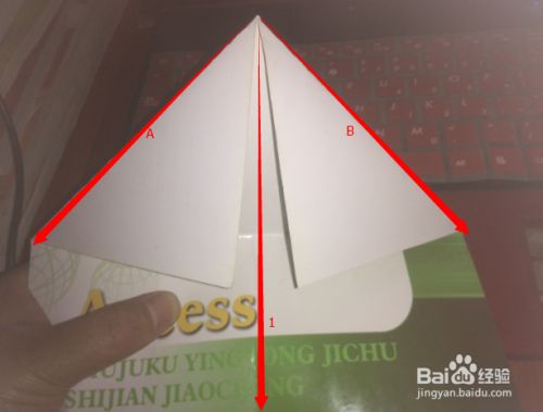 对折之后我们就可以发现就差飞机的翅膀没有做好了,这时候我们就可以沿着剩下的A和B的二分之一将没有被折成三角的下面空白部分向上着起了,折好之后就用它们做飞机的翅膀
