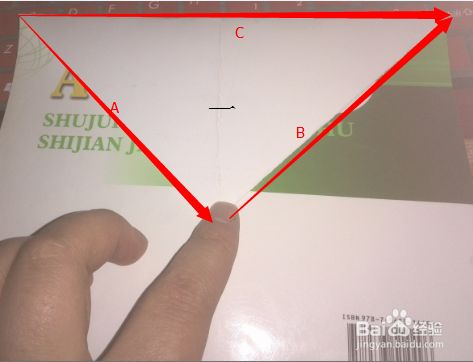 然后将刚折好的两个角向下折,使其与整个纸面有一条交线C如图所示,折好之后得到整个面一