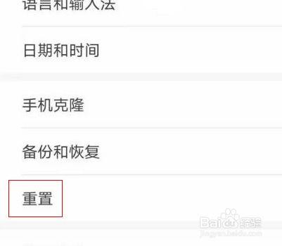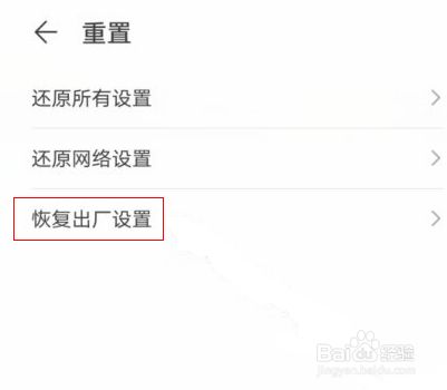 进入重置界面,点击恢复出厂设置进行操作即可。